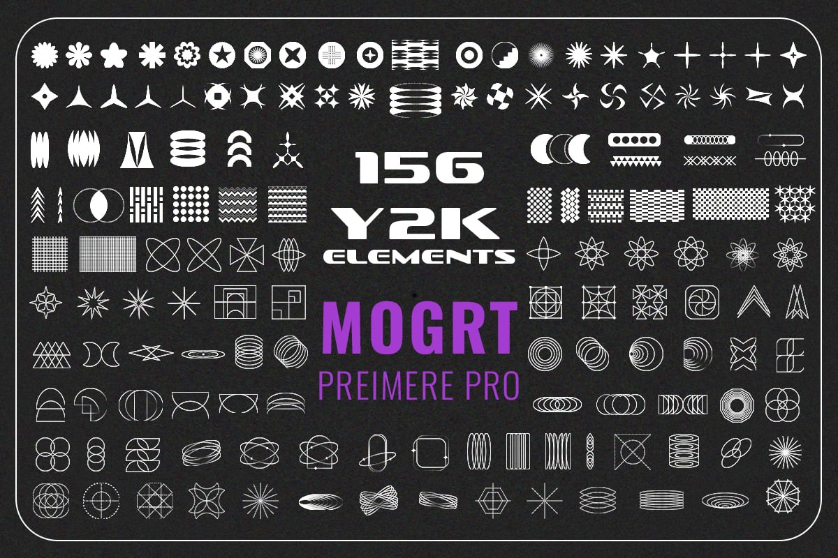 156 Y2K Aesthetic MOGRT for Premiere Pro: 156 Customizable Designs for Social Media, Slideshows, Reels & Futuristic Videos - No Plugins Needed!