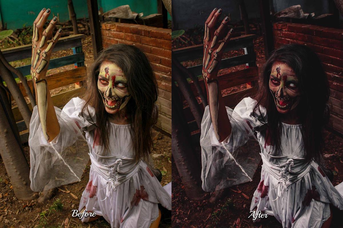 30 Zombie Lightroom Presets Desktop and Mobile | Halloween Horror Filters for Cosplay, and Spooky Photos, Dark Tones and Scary Vibes